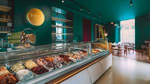 Le gelaterie Terra, a Milano e Roma, sono oasi urbane pensate per offrire un’esperienza multisensoriale: ambienti accoglienti e rilassanti, dominati dal verde-blu caratteristico, dove il gelato è protagonista.