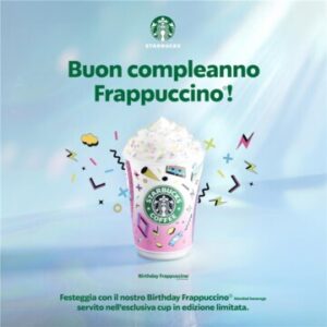 Per la speciale occasione, arriva il Birthday Frappuccino® Blended Beverage: una edizione speciale celebrativa dell’iconica bevanda al gusto di vaniglia e nocciola, decorata con panna montata e vivaci codette colorate. A partire da giovedì 26 giugno e fino al 15 luglio (fino ad esaurimento scorte), la nuova bevanda sarà disponibile in tutti i 48 store distribuiti sul territorio nazionale e in 23 mercati dell’area EMEA. Inoltre, il Birthday Frappuccino® in versione “grande”, verrà servito – fino a esaurimento scorte – nella reusable cup special edition con la riproduzione del logo Starbucks introdotto nel 1992.