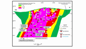 Figure 1: Adumbi Deposit Longitudinal Section Looking Northeast with Drill Hole Grade (g/t) x True Thickness (Metre) Product Contours