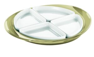 E in tema di aperitivi Harmonia propone anche un’elegante antipastiera a quattro scomparti perfetta per contenere verdurine sott’olio e sottaceti, olive o piccoli finger food. Oltre alle bowl e all’antipastiera, Harmonia presenta anche una serie di vassoi: un vassoio ovale grande 51 cm e uno più piccolo 36 cm per servire contorni o antipasti.
