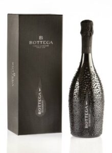 La bottiglia Black Stardust, ideata e disegnata da Monica Lisetto, Responsabile Immagine dell’azienda Bottega, è tempestata di cristalli neri. I 3.000 pezzi vengono posizionati a mano per dare un effetto polvere di stelle. La finitura total black è stata ulteriormente impreziosita dall’etichetta e dalla capsula glitterate.