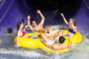 L’area Splash ospita un parco acquatico che è considerato tra i migliori d’Europa: avventure adrenaliniche e tanto divertimento con 7 modernissimi scivoli dotati di imbuti oscuri, con suggestivi giochi di luce e suoni, avvincenti centrifughe e tunnel per discese mozzafiato all’insegna della velocità e delle curve.