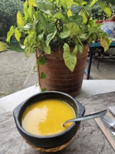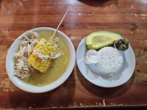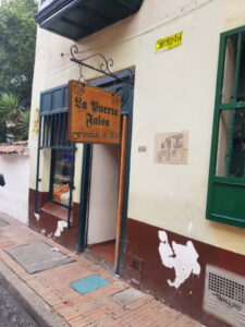 A Bogotà abbiamo fatto l’utlima cena, pardon, l’ultimo pranzo al Ristorante La Puerta Falsa, uno dei piu antichi della città dove abbiamo assaggiato un “ajiaco santafereño” , una zuppa con tre tipi di patate, servito con riso, pannocchia di granoturco e avocado, con l’aggiunta di panna e capperi.