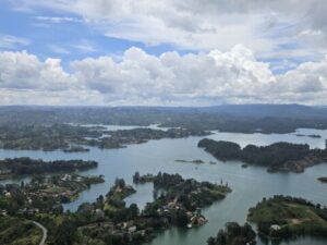 Prima di raggiungere l’Eje Cafetero , l’escursione a Guatapè e alla Piedra del Peñol , una specie di Pão de Açúcar colombiano , un gigantesco monile di granito e quarzo alto circa 220 mt con una fenditura sul fianco che ha permesso di costruire una scalinata ( piuttosto antiestetica ) di 740 gradini. Il premio per chi raggiunge la sommità, è una bellissima vista sul lago artificiale color smeraldo e sul vastissimo arcipelago di isolette e insenature.