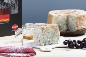 Il Rossini è un formaggio erborinato originale nell’idea, ma che recupera cultura e valori antichissimi, perché è prodotto con buon latte vaccino lombardo e affinato per un mese e mezzo circa in vinacce di uva passita.