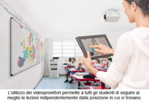 “I display touchscreen a schermo piatto – ha dichiarato Carla Conca, Senior Business Manager Videoprojector di Epson Italia – non solo sono più piccoli e meno coinvolgenti, ma “frenano” nell’attenzione e nell’apprendimento alcuni studenti. Utilizzando videoproiettori moderni e luminosi con schermi di grandi dimensioni e il controllo remoto tramite un’app, gli insegnanti possono sentirsi più liberi all’interno della classe”.